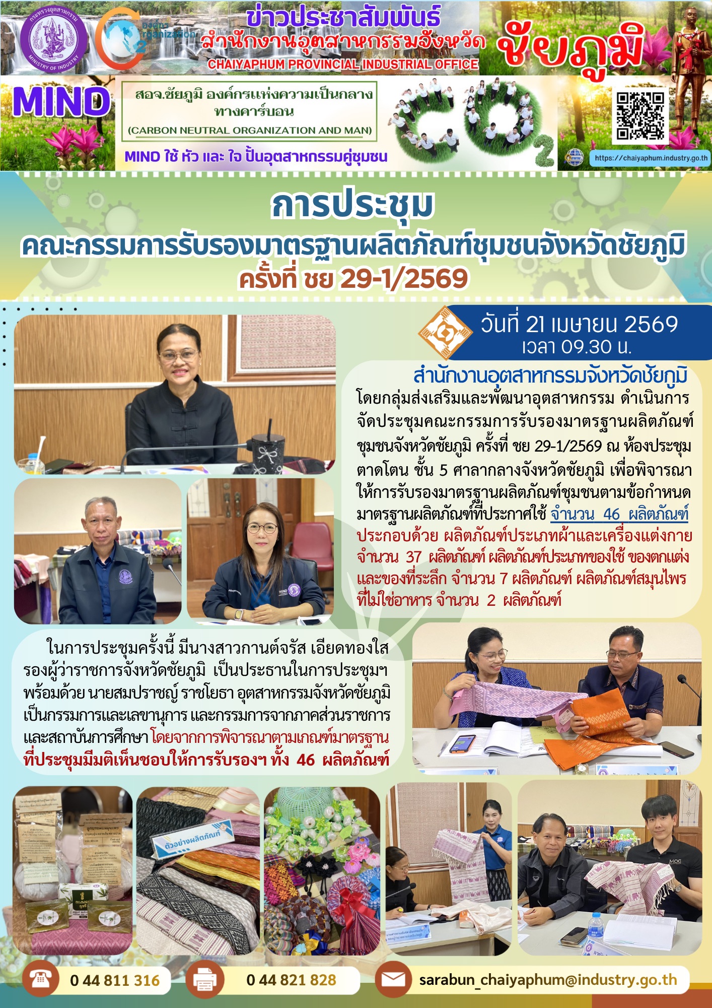 คณะกรรมการรับรองมาตรฐานผลิตภัณฑ์ชุมชนจังหวัดชัยภูมิ ครั้งที่ ชย 29-1/2569